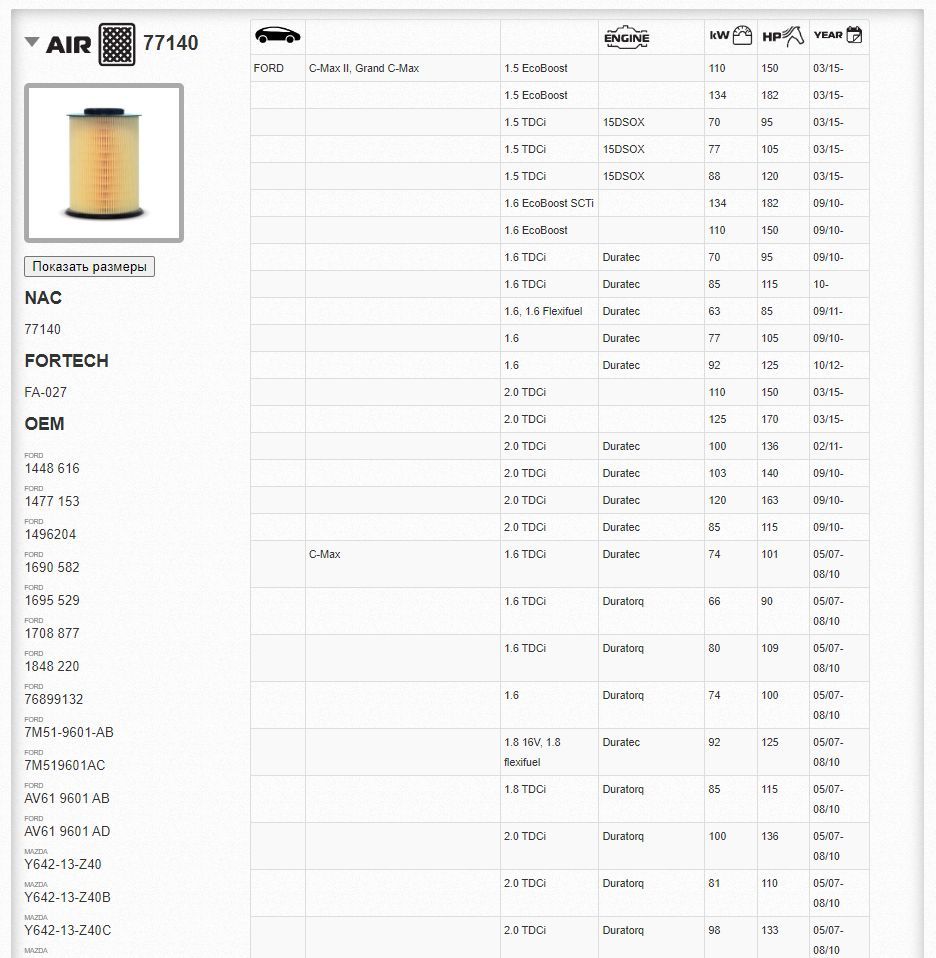Фильтр воздушный NAC-77140 FORD Focus III купить в Барнауле